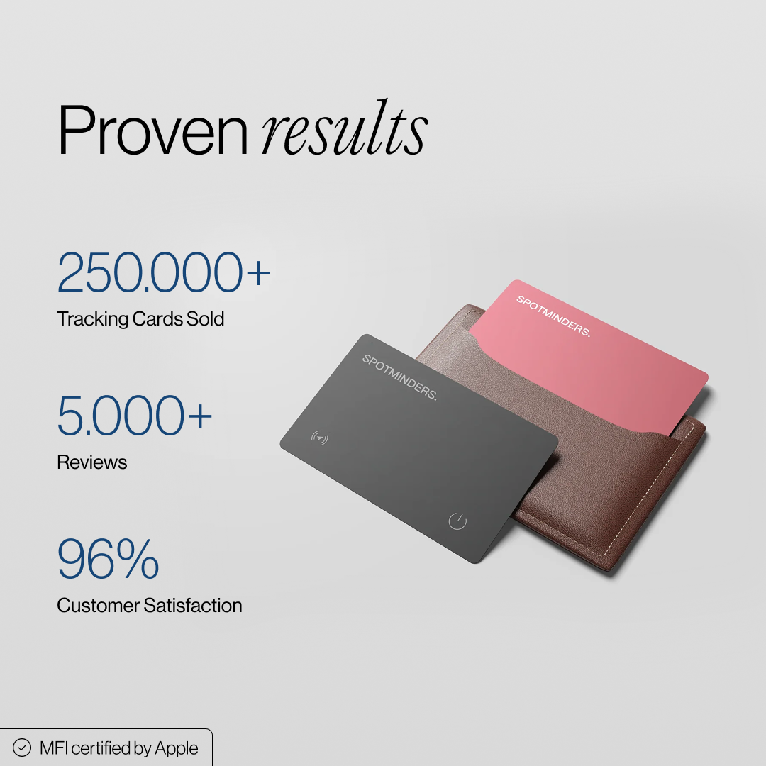 Ultra-thin smart card that fits in any wallet, offering precise tracking through Apple Find My.